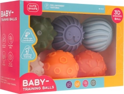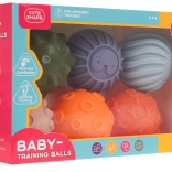Setul conține șase mingi în culori și texturi diferite, ideale pentru copii de la 18 luni. Paleta colorată și formele variate încurajează jocul creativ și dezvoltă percepția senzorială a copiilor.