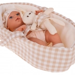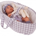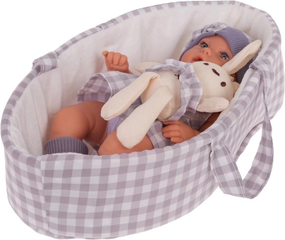 O păpușă-bebeluș adorabilă într-un coș moale, cu un iepuraș de pluș, ideală pentru copii de la 3 ani. Are mâini, picioare și cap mobile, hainuțe ușor de dat jos și un coș textil ușor, cu mânere pentru transport comod. Jocul cu păpușa dezvoltă motricitatea fină și imaginația.