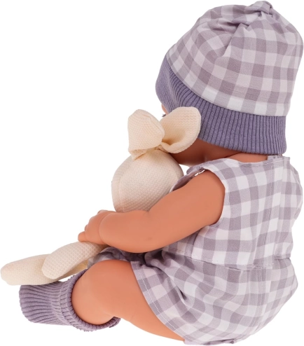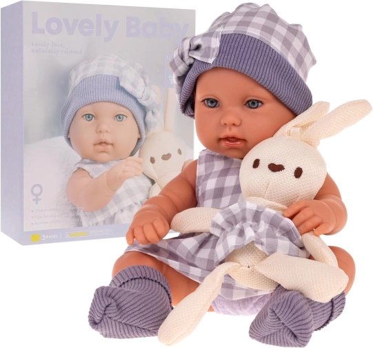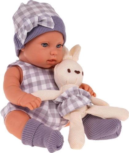 Această păpușă-bebeluș realizată cu grijă va deveni un companion iubit pentru joaca zilnică. Datorită membrelor și capului mobile, se îmbracă ușor, coșul cu mânere moi permite să fie luată oriunde, iar iepurașul de pluș încântă ca jucărie tandră și pufoasă.