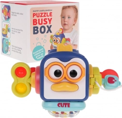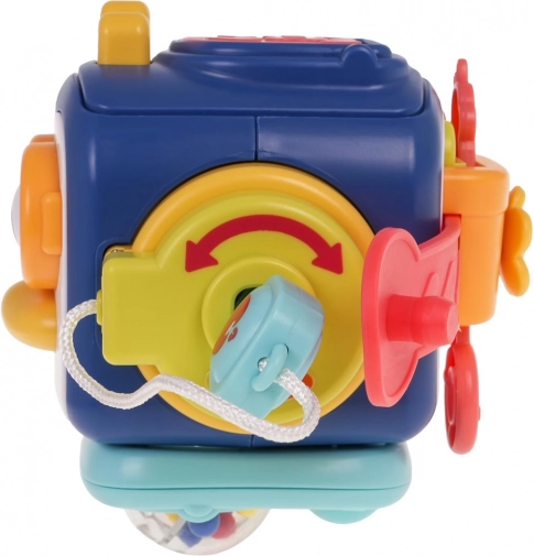 Cubul este conceput pentru a dezvolta motricitatea fină și percepția senzorială. Este realizat din plastic și conține diverse elemente interactive.