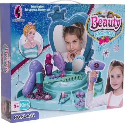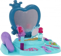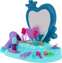 Din set face parte o toaletă cu oglindă frumoasă, uscător de păr, pieptene, perie de păr și alte accesorii cosmetice care aduc ore întregi de distracție.