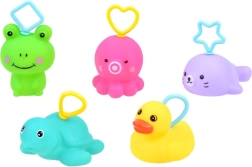 Setul include cinci jucării colorate care aduc bucurie și distracție în timpul baie.