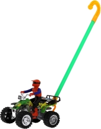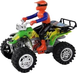 Toți copiii vor iubi ATV-ul deoarece vine cu detalii realiste, precum roți mari și ghidon, și cu un șofer îmbrăcat într-un costum portocaliu-albastru, care adaugă autenticității și distracției jocului.