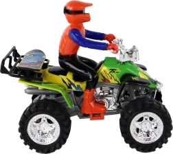 ATV-ul are detalii realiste, inclusiv roți mari de teren și ghidon, care îmbunătățesc experiența de joacă.