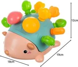 Suprafața ariciului combină diferite texturi (netede, bombate, cu orificii) care stimulează simțul tactil și susțin abilitățile cognitive. ABS de calitate este durabil și sigur, nu conține substanțe nocive și se curăță ușor.