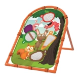Suportul colorat cu deschideri din plasă numerotate îi motivează pe copii să arunce precis și să învețe prin joacă.
