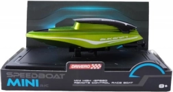 Această barcă RC mini, într-o atractivă culoare verde, îmbină performanța sprintenă cu controlul facil. Se deplasează lin înainte/înapoi și virează stânga/dreapta, iar datorită butonului de accelerare capătă pentru câteva secunde un plus de putere pentru sprinturi dinamice la suprafață. Senzorul de apă asigură pornirea doar la contactul cu apa – sigur pentru copii și pentru baterie.
