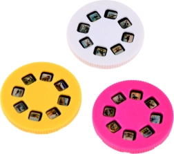 Include trei discuri colorate din plastic cu mai multe imagini, care pot fi ușor schimbate pentru o varietate de proiecții.