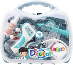 Valiza în care este depozitat întregul set nu este doar estetică și atractivă datorită culorii albastre, ci și deosebit de practică. Este robustă și ușor de transportat, astfel încât copiii pot lua întregul set oriunde. Copilul poate avea astfel mereu la îndemână instrumentele sale medicale preferate, gata pentru următoarele „proceduri”.