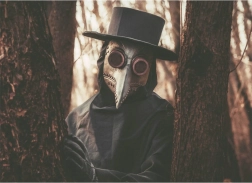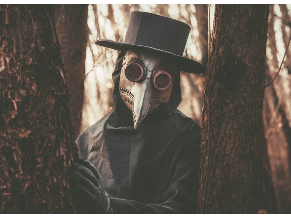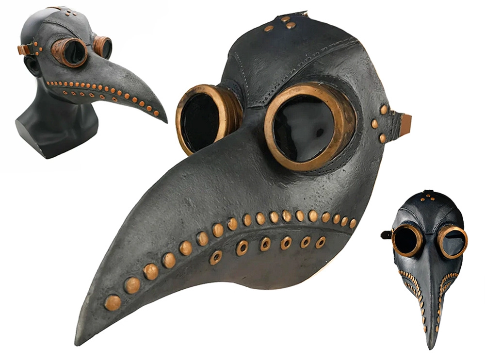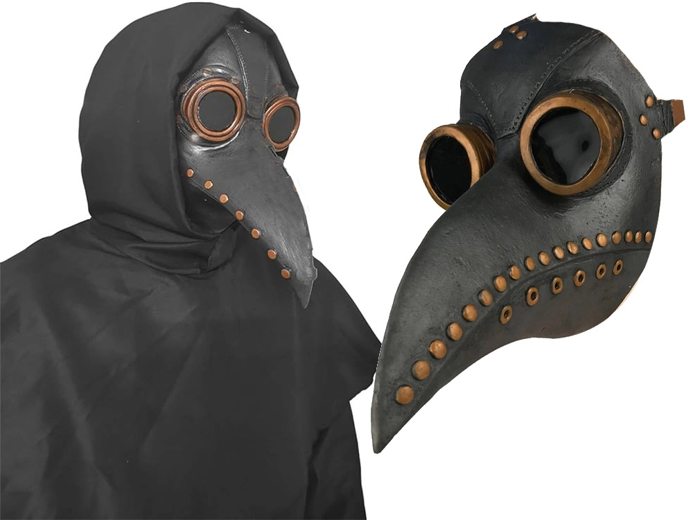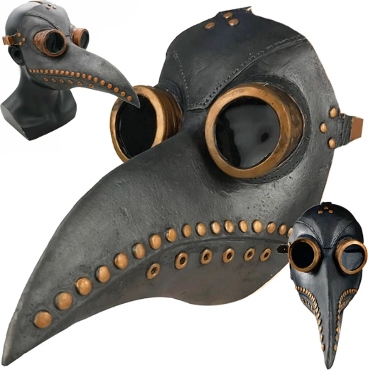 - Inspirată de costumele de doctor din perioadele de epidemie, cu un design distinctiv de cioc.