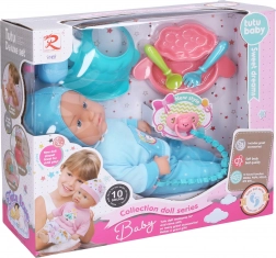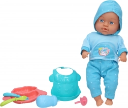 Descoperiți un bebeluș fin și plăcut la atingere, cu dimensiunea de 30 cm, care datorită corpului moale invită la îmbrățișări și joacă zilnică. La apăsarea burticii, bebelușul emite efecte sonore ce stimulează imaginația și distracția copiilor.