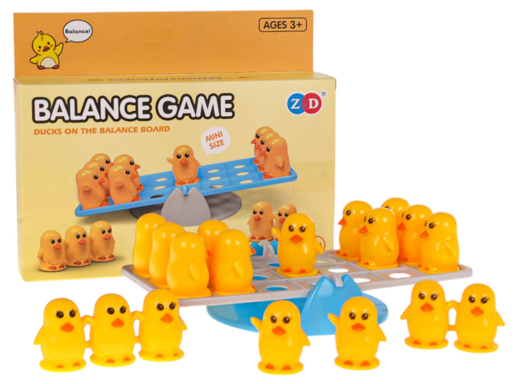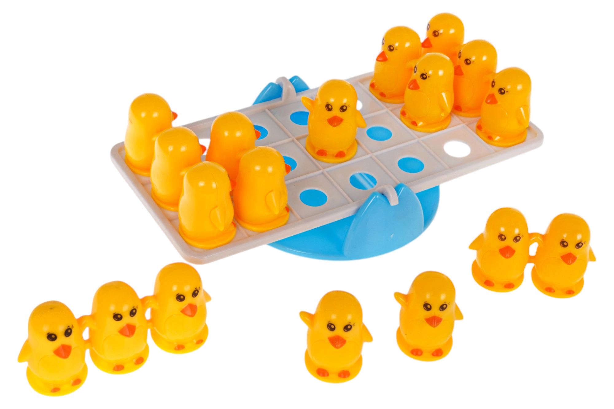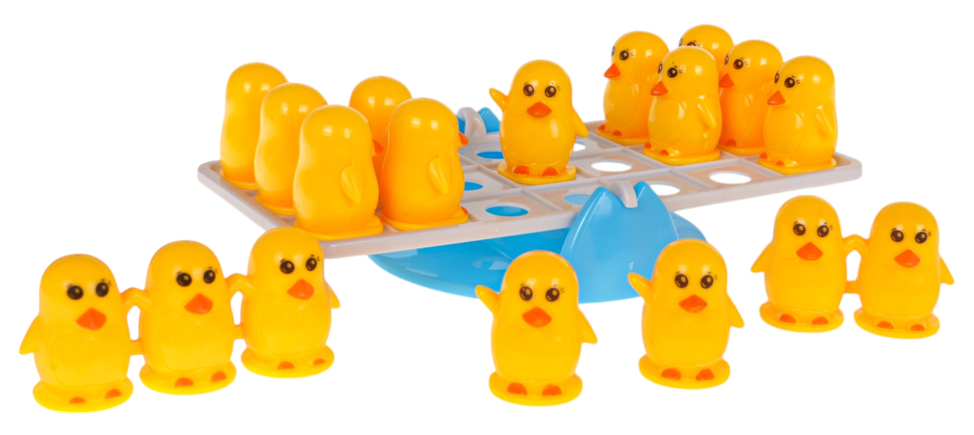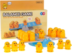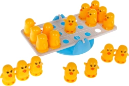 Acest joc de echilibru cu rățuște stimulează imaginația copiilor și antrenează motricitatea fină. Scopul este să așezi figurinele de rațe pe ambele părți ale bazei astfel încât să se mențină echilibrul. Copiii învață în mod natural compararea greutății, adunarea și scăderea și înțeleg principii simple de fizică.