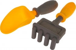 În set găsiți și greblă și lopățică. Aceste unelte le permit copiilor un joc creativ și dezvoltarea abilităților lor de construcție pe nisip sau pietriș.