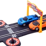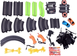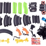 Setul include toate elementele necesare pentru curse, cum ar fi segmentele drepte, curbele, buclele și marcajele traseului.