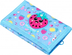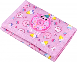 Portofelul este disponibil în 3 variante diferite: albastru cu căpșună, roz cu gogoșă și roșu cu iepuraș. Dimensiunile compacte sunt ideale pentru ghiozdan, rucsăcel sau buzunar.