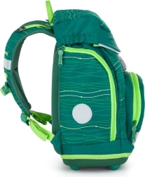 Setul 4în1 OXY Sherpy green este conceput pentru purtarea comodă și sigură a rechizitelor școlare. Panoul de spate modelat anatomic, bretelele căptușite pentru umeri și cureaua de piept reglabilă susțin postura corectă și confortul pe tot parcursul zilei de școală. Datorită bazei rigide cu piciorușe din plastic, rucsacul stă singur și nu se răstoarnă.