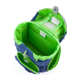 Setul OXY Sherpy Blue este o alegere de încredere pentru copiii din clasele I–III. Compartimentul principal cu șnur de strângere și închidere magnetică permite deschiderea ușoară cu o singură mână, iar separatorul intern menține ordinea în manuale și caiete. Buzunarul frontal pentru gustare și buzunarele laterale cu fermoar oferă spații de depozitare suplimentare, bine organizate.