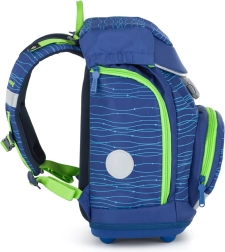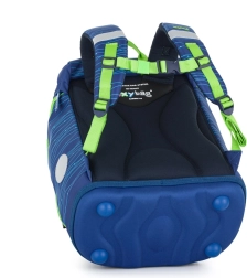 Ergonomia pe primul loc: panou dorsal cu formă anatomică (lungime 33 cm), bretele de umăr căptușite și curea toracică reglabilă susțin postura corectă a corpului. Fundul rigid cu piciorușe din plastic previne răsturnarea, iar elementele reflectorizante cresc siguranța la mersul către și de la școală. Datorită insignelor interschimbabile cu prindere tip arici, copiii pot personaliza ușor aspectul rucsacului.