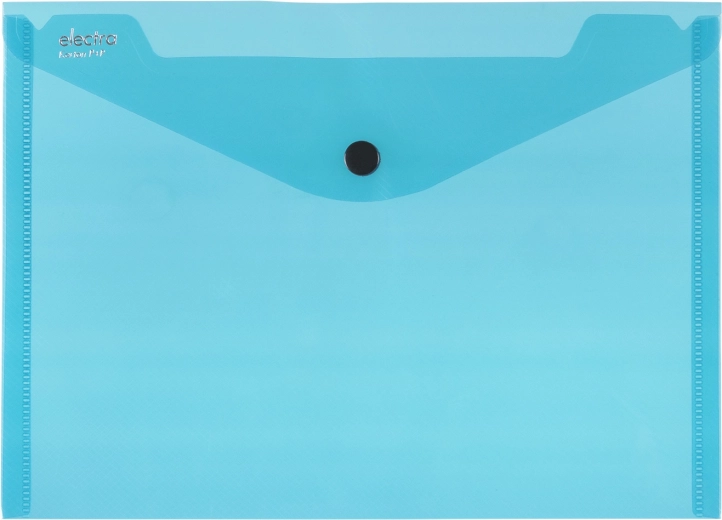 Mapa elegantă A5 Electra este realizată din polipropilenă cu grosimea de 220 mic, asigurând rezistență și calitate. Închiderea ușoară cu capsă asigură transportul sigur al documentelor: