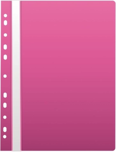 Acest liant rapid este soluția perfectă pentru toți cei care doresc să aibă documentele stocate în mod organizat și sigur. Fața este transparentă cu o grosime de 120 microni, permițând vizualizarea conținutului fără a deschide. Spatele este de un roz intens, opac și mai gros cu o grosime de 180 microni, ceea ce asigură durabilitate și stabilitate. Este disponibilă o bandă inscriptibilă care permite etichetarea rapidă și ușoară a conținutului. Capacitatea ligării este de până la 2 cm, astfel încât poate ține un număr mai mare de foi.