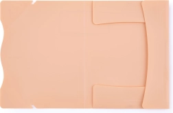 Mapă cu trei clape din polipropilenă într-o nuanță pastelată de caisă oferă închidere cu ajutorul unei elastice și un dosar extensibil pentru o capacitate de până la 250 de coli format A4.