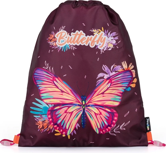 Săculeț stilat și ușor pentru papuci sau educație fizică, cu motiv fluture, pe placul copiilor și părinților. Datorită șnururilor de strângere se închide rapid și păstrează conținutul în siguranță. Poate fi purtat ca un rucsac pe spate sau prins cu ușurință de rucsacul școlar.