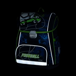 Rucsac școlar ușor și rezistent, cu motiv de fotbal, pentru micii școlari. Oferă spate modelat anatomic, bretele confortabile, căptușite și bază rigidă pentru depozitarea în siguranță a accesoriilor. Datorită elementelor reflectorizante, copilul este mai vizibil, iar compartimentul spațios și buzunarele asigură o organizare perfectă.