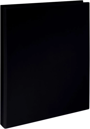 Îndosar elegant format A4 în culoarea negru, echipat cu buzunar transparent pe partea din față și cotor. Oferă un mecanism practic cu 4 inele de tip "D" pentru o arhivare eficientă a documentelor.