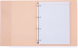 Classeur cu inele A4 Pastelini, în nuanță caisie, cu suprafață rezistentă din PVC. Oferă un mecanism cu 4 inele pentru fixare stabilă și 100 de coli liniate în dotarea standard – ideal pentru școală, birou și organizarea de acasă.