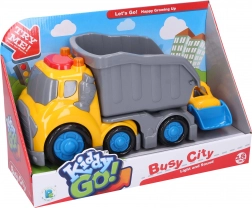 Cu acest set de vehicule de construcții Kiddy, copiii se vor bucura de ore întregi de distracție creativă. Camionul basculant cu remorcă are uși mobile și efecte activate de butonul de pe acoperișul cabinei, în timp ce buldozerul este echipat cu cupă mobilă pentru încărcare și descărcare. Datorită roților libere, vehiculele sunt ușor de manevrat chiar și de cei mai mici șoferi.