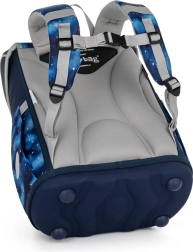 Ghiozdanul are o cataramă de siguranță metalică cu reflector, care crește vizibilitatea în condiții de lumină slabă. Buzunarul din față este ideal pentru depozitarea gustărilor, iar datorită elementelor reflectorizante, copilul este mai vizibil. Baza ghiozdanului este realizată din material rezistent, care protejează conținutul de răsturnare și vărsare.