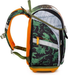 Rucsacul școlar Premium Light, cu stil de dinozaur, îi va încânta pe copii prin grafica expresivă cu T‑Rex și îi va convinge pe părinți prin ergonomia de top. Construcția ușoară, cu capitonare respirabilă a spatelui și bretele late, căptușite, asigură purtare confortabilă și sănătoasă zi de zi. Chingile de reglaj și cea de piept ajută la distribuirea greutății și mențin rucsacul stabil pe spate.