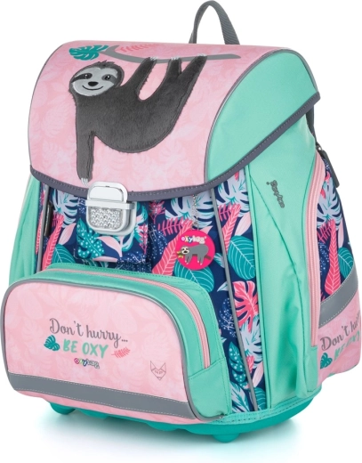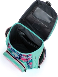 Rucsacul dispune de un compartiment principal spațios, care conține toate obiectele necesare pentru primele două clase. Buzunarul frontal este potrivit pentru gustări. Închiderea cu clemă de siguranță asigură deschiderea și închiderea ușoară a rucsacului.