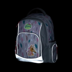 Rucsacul școlar ușor și ergonomic Oxy Go cu motiv cu cal este ideal pentru copiii de la înălțimea de 125 cm (clasele 1–3). Oferă spate anatomic, respirabil, bretele de umăr reglabile pentru purtare confortabilă, suficiente buzunare și compartimente pentru manuale și mărunțișuri și bază rigidă împotriva murdăririi și scurgerilor. Pentru siguranță sporită, include elemente reflectorizante.