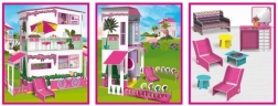 După asamblare, vila are dimensiunile de 73 × 67 × 22 cm și poate găzdui confortabil o păpușă Barbie originală. Casa este dotată cu mobilier precum șifonier și canapea, iar accesoriile de grădină includ șezlonguri, măsuță și un garduleț cu flori. Cadoul ideal pentru micii arhitecți și pentru iubitorii universului Barbie.