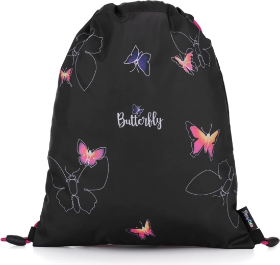 Motivul stilat Butterfly va încânta orice copil, iar datorită designului inteligent săculețul poate fi purtat confortabil pe spate sau prins cu ușurință de rucsacul școlar. Dimensiunile compacte economisesc spațiu, oferind totodată suficient loc pentru echipament sportiv sau papuci.