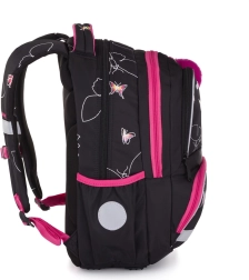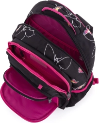 Rucsacul școlar OXY NEXT Butterfly îmbină designul modern cu motive de fluturi și echipare practică pentru școală și activități. Partea din spate ergonomică, bretelele moi de umăr și cureaua de piept reglabilă distribuie sarcina și contribuie la o postură sănătoasă.