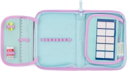 Penar școlar cu un singur etaj și 2 clapete, gol, conține 25 de bucle din cauciuc pentru fixarea instrumentelor de scris. Pe clapetele interioare se află folii transparente pentru orarul școlar.