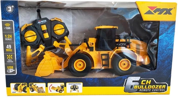 Buldozer RC cu telecomandă, cu efecte luminoase. Se deplasează în toate direcțiile.