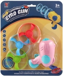 Setul conține trei elice în culori diferite, datorită cărora puteți concura pentru cel mai înalt zbor sau cea mai bună aterizare.