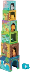 Această set de 6 cuburi oferă fiecărui copil posibilitatea de a descoperi animale exotice din ținuturi îndepărtate. Datorită portabilității și materialului ales, animalele devin însoțitori ideali în călătorii și la baie (atenție, cartonul nu trebuie să vină în contact cu apa!).
