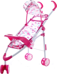Un cărucior de golf roz frumos pentru păpuși cu motiv de nori, ideal pentru copii de la 3 ani. Se remarcă prin construcția sa metalică solidă și ușurința de manevrare.