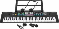 În pachet: clape, adaptor de alimentare, microfon, suport pentru partituri. Alimentare la rețea (adaptor inclus) sau 6× AA 1,5 V (neincluse).