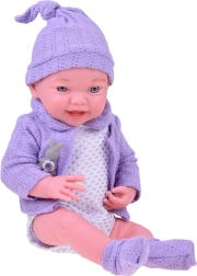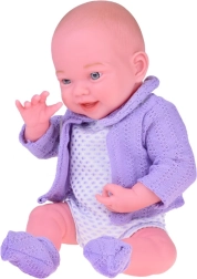 Include o garderobă stilată: body deschis la culoare cu model mov, pulover tricotat moale, căciuliță și șosete, perfect asortate într-un singur set. Păpușa este un cadou grozav pentru copiii care iubesc îngrijirea bebelușilor și își dezvoltă abilitățile sociale prin joacă.