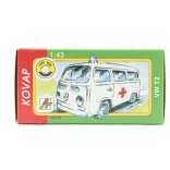 Acest model din metal al ambulanței se remarcă prin prelucrarea sa precisă și fidelitatea detaliilor.