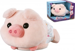 Acest porcușor interactiv aduce porții duble de distracție. Cu efectele sale de lumină și sunet oferă copiilor momente de joacă de neuitat. Este suficient să apăsați butonul de pe partea stângă și porcușorul va porni cu o melodie, iar la o altă apăsare repetă ce spuneți, toate acestea în mișcare! Porcușorul poate fi ușor pornit și oprit cu un comutator situat pe partea inferioară.