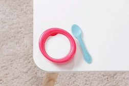 Pe farfurie, după contactul cu apa, apare mâncarea, iar pe oliță se arată „magic” rezultatul. O modalitate grozavă de a învăța ritualurile de îngrijire prin joc.