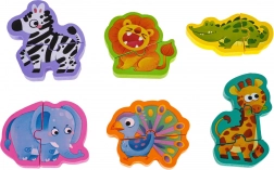Sunt incluse figurine din lemn cu animale: zebră, leu, elefant, păun, girafă și crocodil. Grozavă pentru joacă independentă sau pentru creații împreună cu părinții.