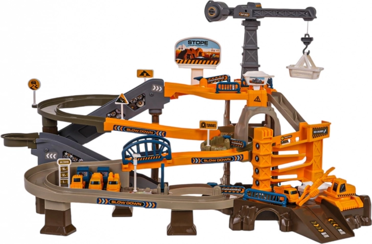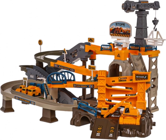 Set de parcare, șantier cu macara și mașinuțe de construcții pentru copii de la 3 ani. Este fabricat din plastic de cea mai bună calitate, în culori vii. În acest set veți găsi multe atracții, precum garaj, parcare, macara, stație. Banda electrică trage vehiculele pe pistă în sus și este însoțită de sunete plăcute. Setul are multe curbe, intrări, bariere și tuneluri, nu ai cum să te plictisești. Există și un jgheab pentru pietre, care transportă pietrele într-un container special. O altă mașină, amplasată lângă jgheab, încarcă pietrele în mașinuțe pentru a le urca până în vârf. Setul este alimentat de 3 baterii AA 1,5 V (nu sunt incluse). .. Funcțiile setului: . - destinat copiilor de la 3 ani, .- fabricat din materiale de cea mai înaltă calitate, .- macara mobilă: rotație la 360 de grade a brațului macaralei, cârlig mobil în sus și în jos (manual), .- 4 vehicule de construcții în set, .- sunete plăcute, .- bandă electrică ce trage vehiculele pe pistă până sus, .- jgheab pentru transportul pietrelor, .- utilaj mobil pentru transferul pietrelor din container în vehicule, .- numeroase viraje, .- multe bariere de deschis, .- multe oportunități de joacă. . |