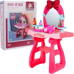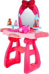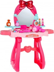 Picioarele solide cu inimioare, oglinda mare și detaliile drăgălașe în nuanțe de roz transformă măsuța într-un loc sigur și frumos pentru joacă.